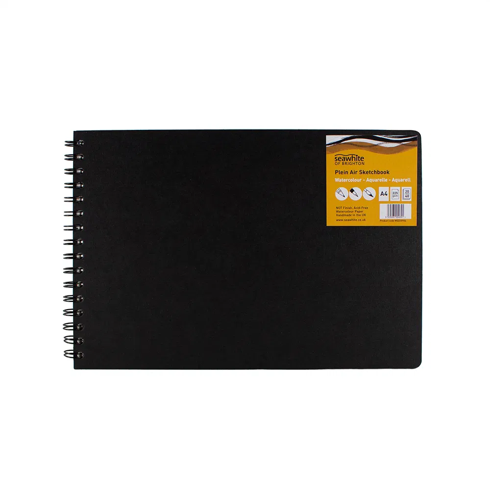 “Landscape Plein Air Hardback Sketchbook with closer wire makes it easier to carry – perfect for painting on-the-go. Black Poplin covers with rounded corners. 5/8″” black wire-o binding.