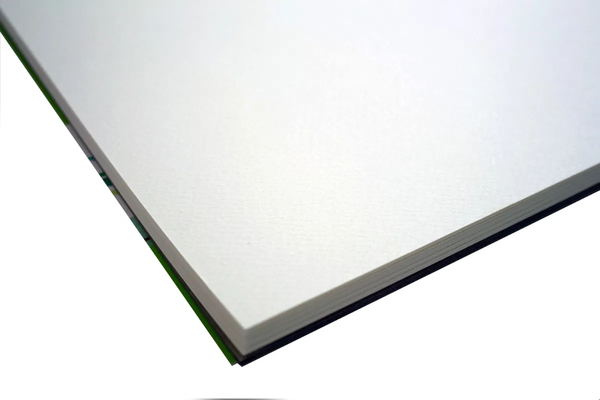 Recycled Watercolour pad. Attractive printed cover with 2mm rigid board backing. 7/16″ black wire-o binding.