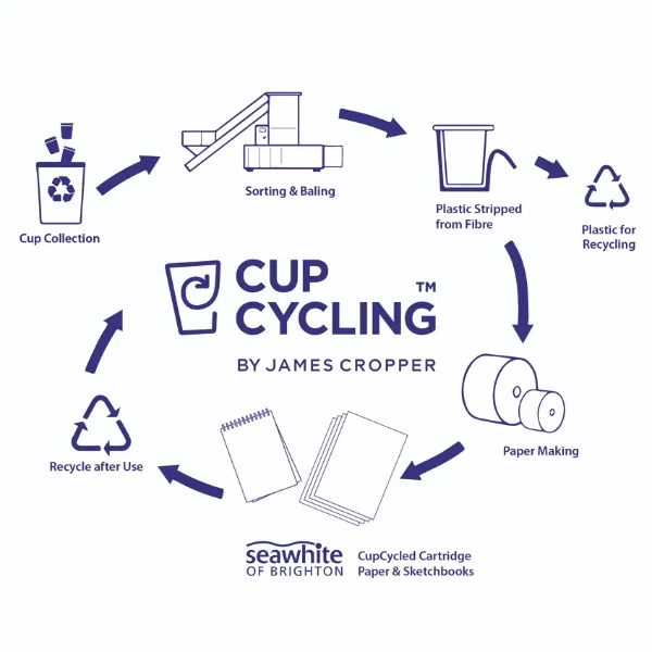 Contains 140gsm CupCycling™ Cartridge Paper. Sized to perform with wet and dry media. Acid and Chlorine free.