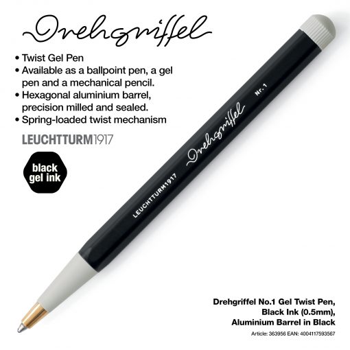 The Drehgriffel no. 1 Gel Pen is a design classic that unites vintage inspiration with contemporary craftsmanship. Based on a style originating in the 1920s, this pen’s hexagonal barrel, combined with a contrasting tapered tip and twist button, creates a distinctive and award-winning design that embodies both precision and elegance.