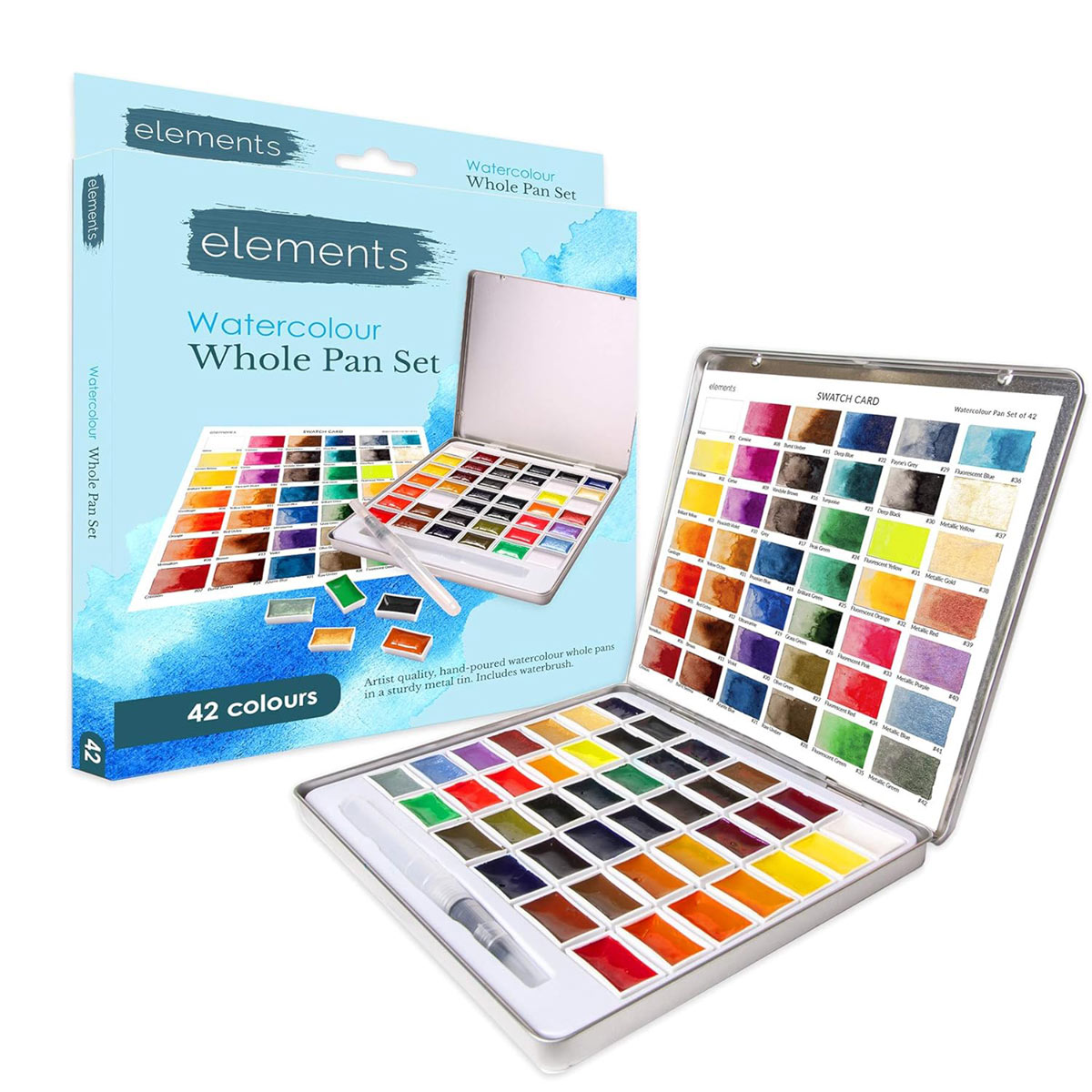 A set of 42 richly pigmented, premium watercolour whole pans